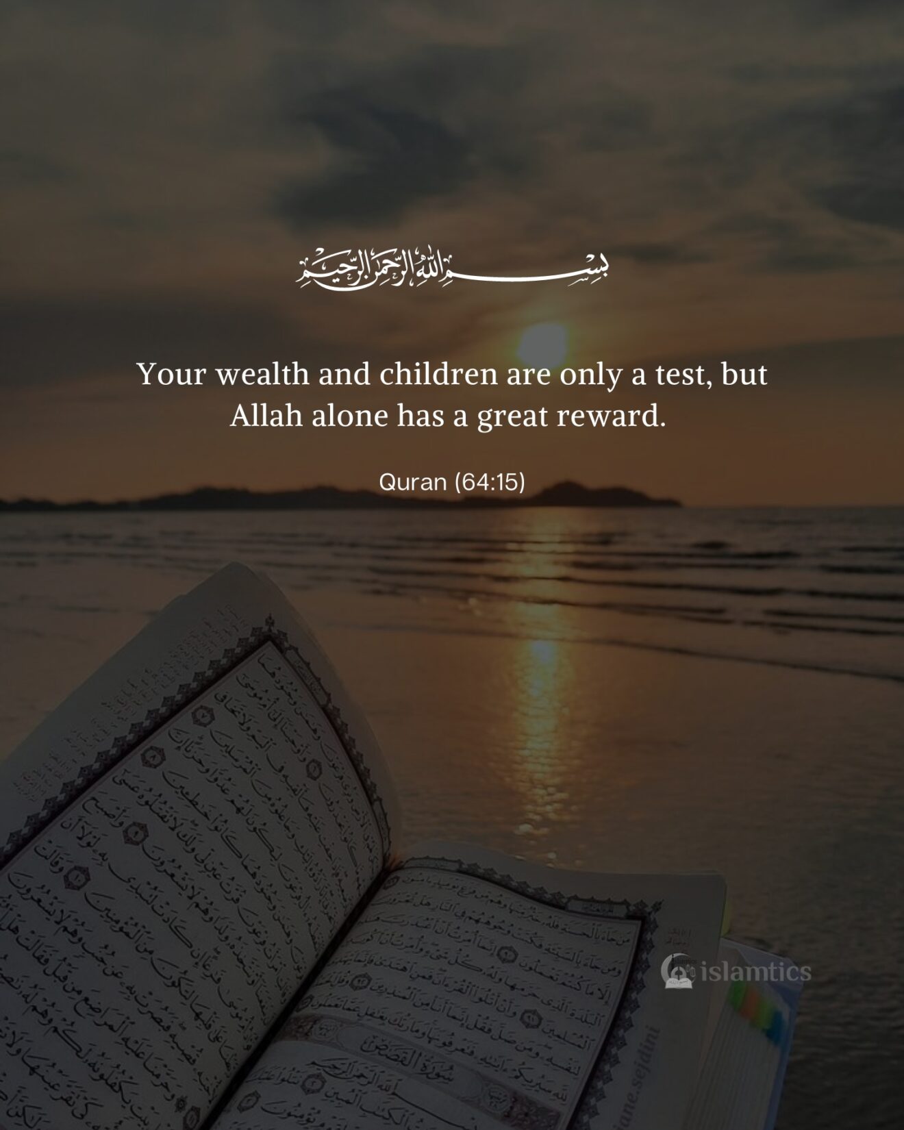 Your wealth and children are only a test, but Allah alone has a great reward.