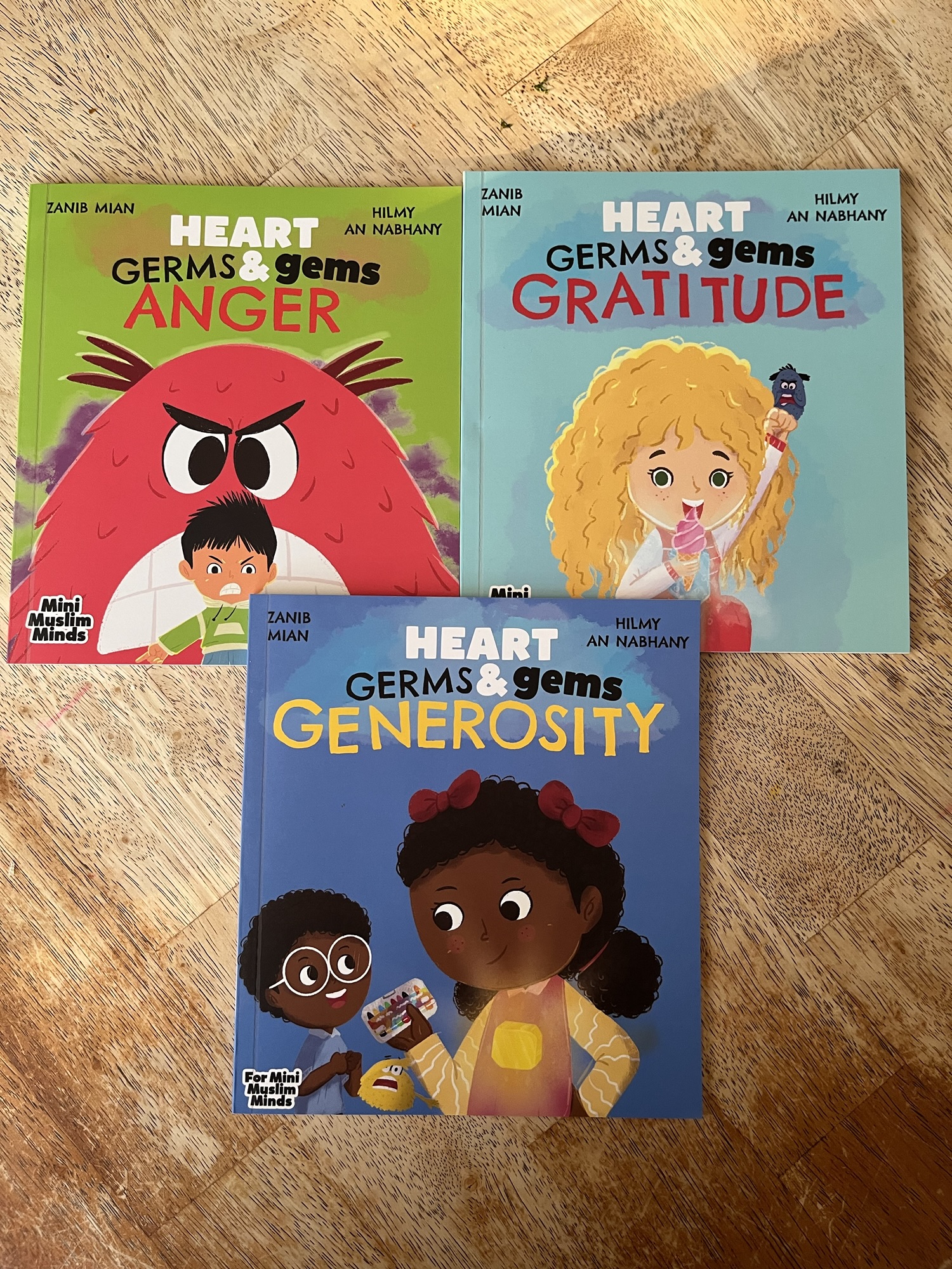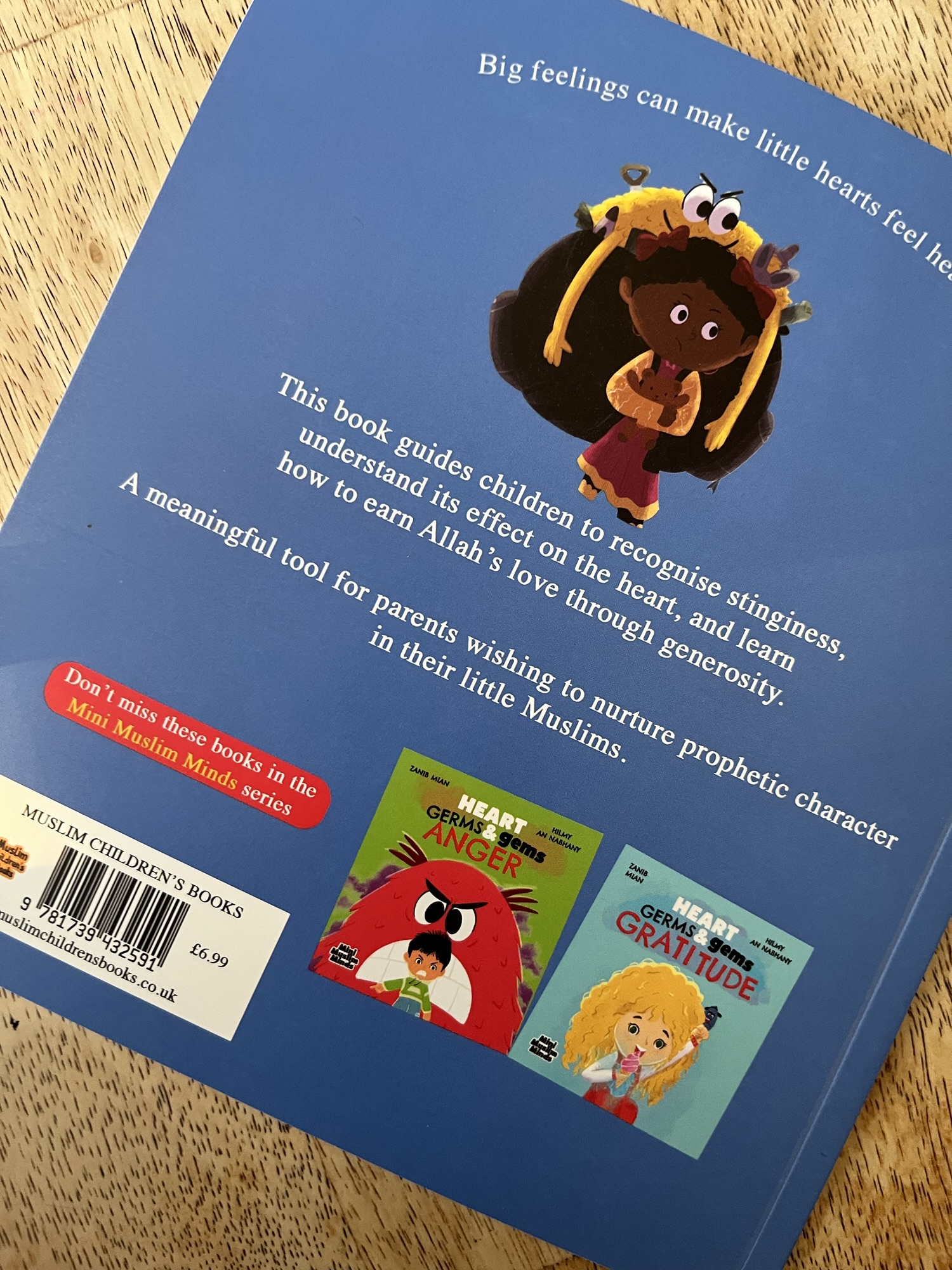 Heart Germs & Gems: Generosity: The book first explains the concept of stinginess and links it to being afraid that you won’t have enough. It shares ways to help determine if you are being stingy, and how it makes you feel. It then explores how to cure that Heart Germ with Generosity. It provides little ways to start small and how it brings joy to others, pleases Allah swt and can lighten the heart, as you truly learn that everything comes from Allah swt.