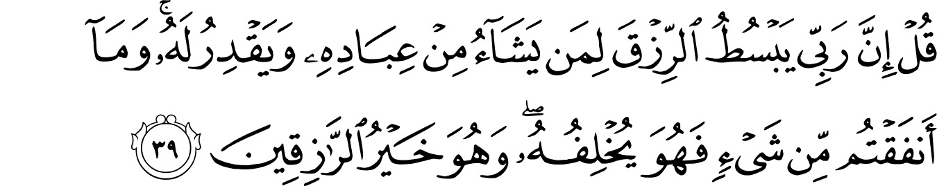 “Say, “Indeed, my Lord extends provision for whom He wills of His servants and restricts [it] for him. But whatever thing you spend [in His cause] – He will compensate it; and He is the best of providers.“ [Surah Saba 34:39]