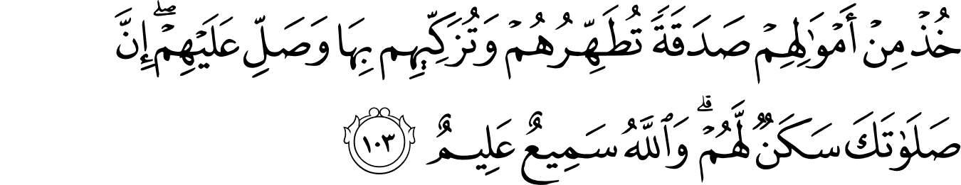 “Take, [O, Muhammad], from their wealth a charity by which you purify them and cause them increase, and invoke [ Allah’s blessings] upon them. Indeed, your invocations are reassurance for them. And Allah is Hearing and Knowing.” [Surah At-Tawbah 9:103]